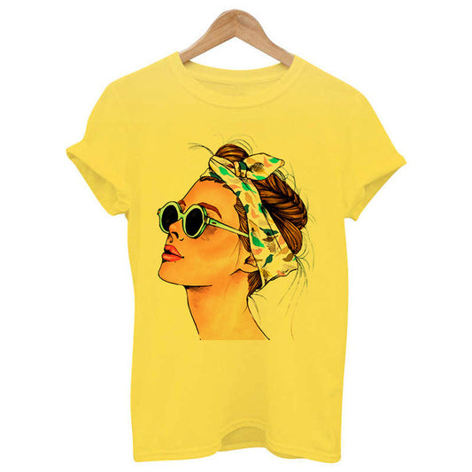 Fashion Woman Print Short T shirt Sleeve Round Nec